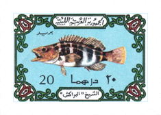 In Lesotho erschien 1998 eine Ausgabe Fische mit insgesamt 53 Briefmarken mit Fische. Eine Briefmarke daraus zeigt den unter Aquarianern sehr beliebten Purpurpracht-Buntbarsch (Pelviachromis pulcher).